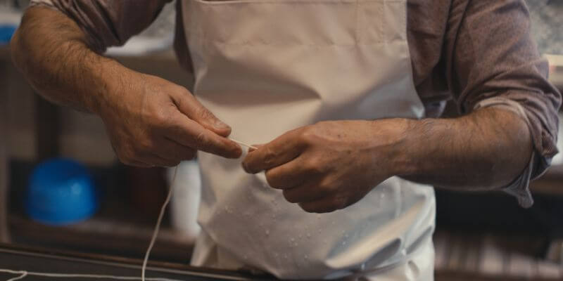 Die Därme werden in einem mehrtägigen Prozess immer wieder in Handarbeit vom Schleim gesäubert.