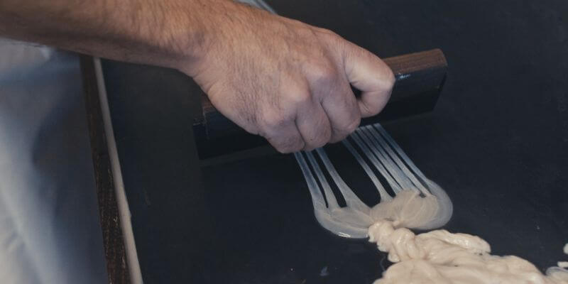 Die angeschlauften Darmbändchen liegen zum Verdrillen bereit.